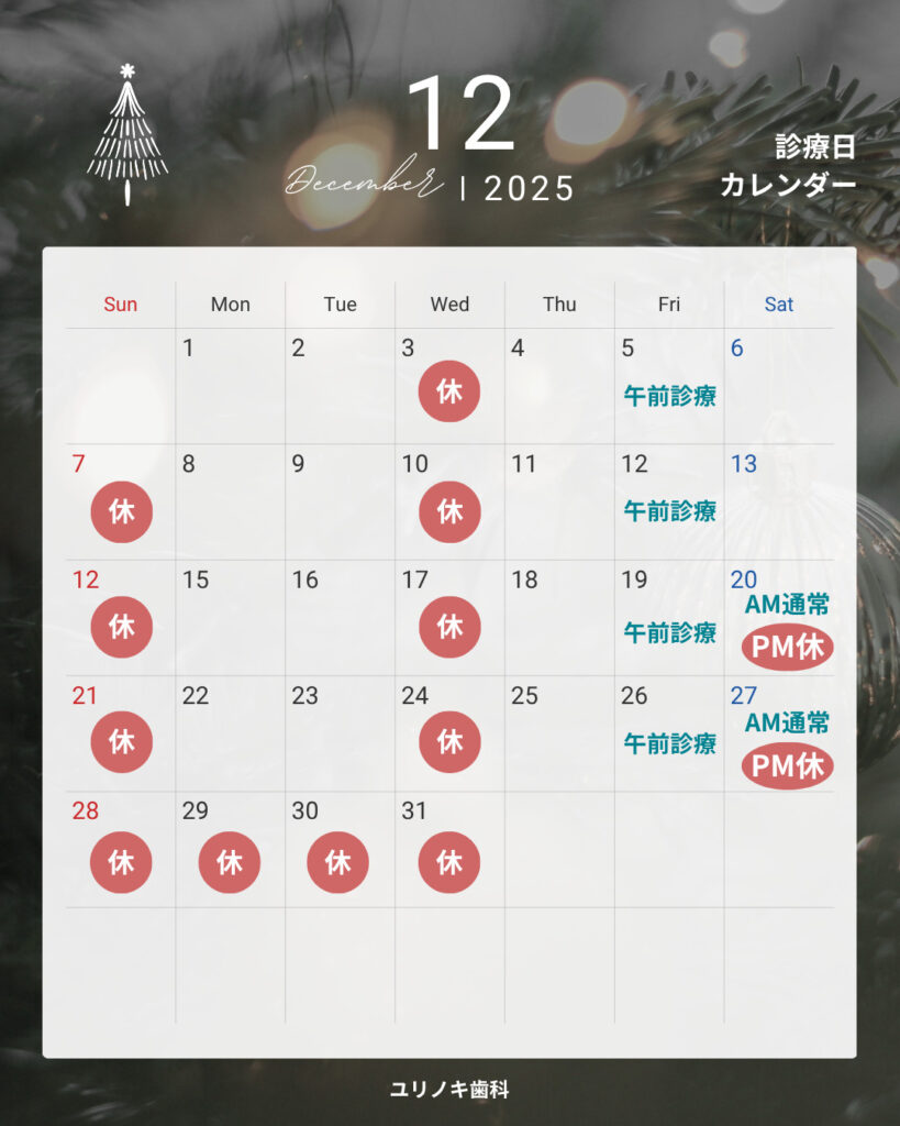 今年も残りわずかとなりました。気忙しい季節ですが、お口の健康もしっかり整えて新年を迎えましょう🦷✨